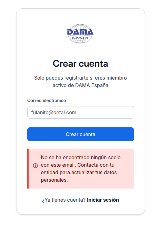 Para empezar, es necesario que generes un nuevo usuario utilizando el mismo correo electrónico con el que te diste el alta originalmente en Dama España.