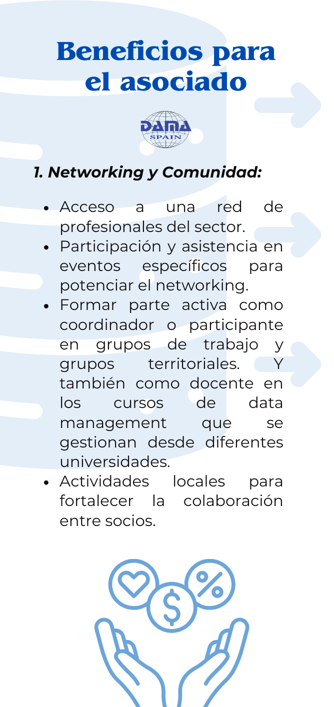 Con descuentos exclusivos del 10% en presencial y 5% adicional en online, hasta el acceso a recursos clave como la revista DAMA News, grupos de trabajo territoriales y el prestigioso programa de certificación CDMP.